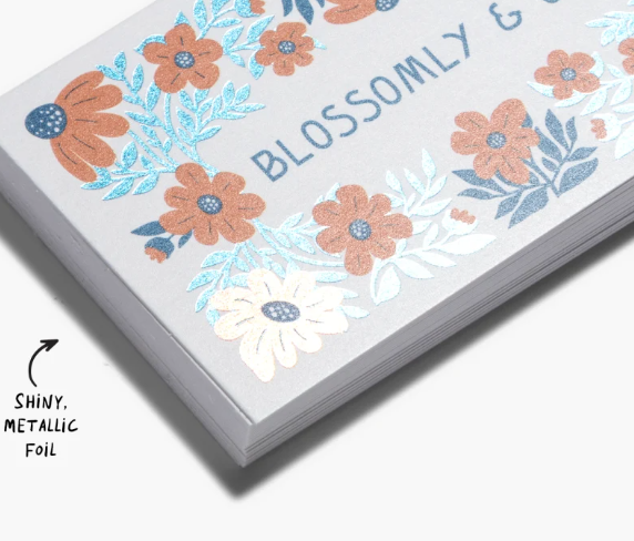 - Shiny, metallic foil on the front of your card